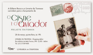 Minha querida amiga Heliete Vaitsman lança seu livro O cisne e o aviador (Editora Rocco), no próximo dia 20 de março (quinta-feira),a partir das 19 horas, na Livraria da Travessa (Shopping Leblon)- Rua Afrânio de Melo Franco, 290 - loja 205