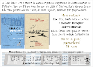 O evento vai rolar no dia 30 de junho (quinta-feira) a partir das 19 horas na Casa de Leitura Dirce Cortes Riedel,na Rua das Palmeiras, 82 em Botafogo (telefone: 2334 8227).